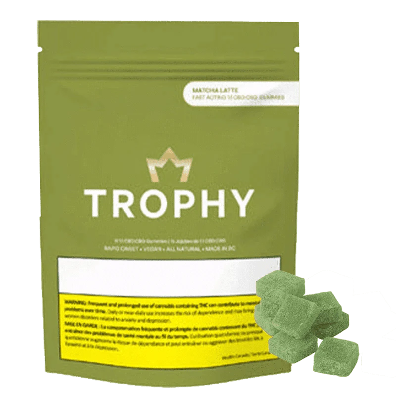 Trophy Matcha Latte 1:1 CBG:CBD Gummies — vegan, rapid-onset wellness gummies crafted in BC.
